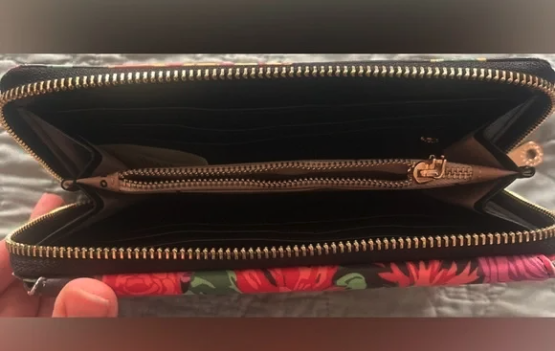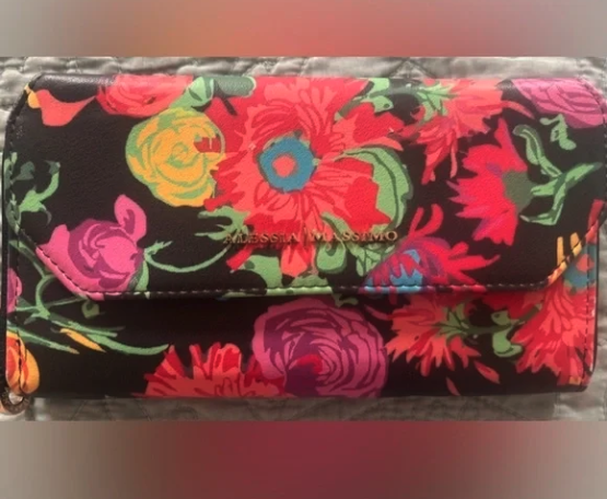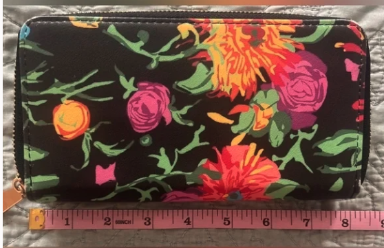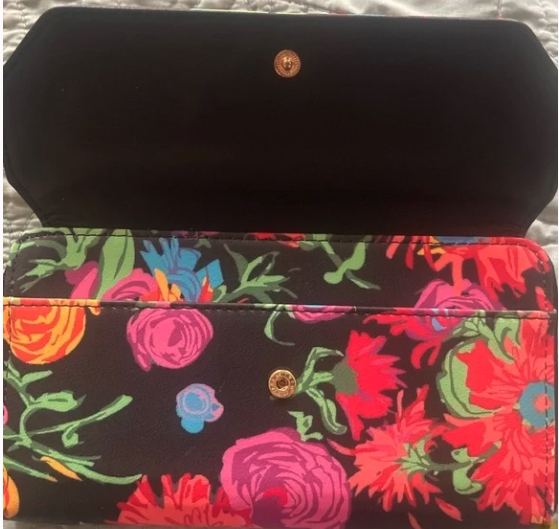 This women’s wallet features a vibrant multicolor design, perfect for adding a pop of color to any outfit.