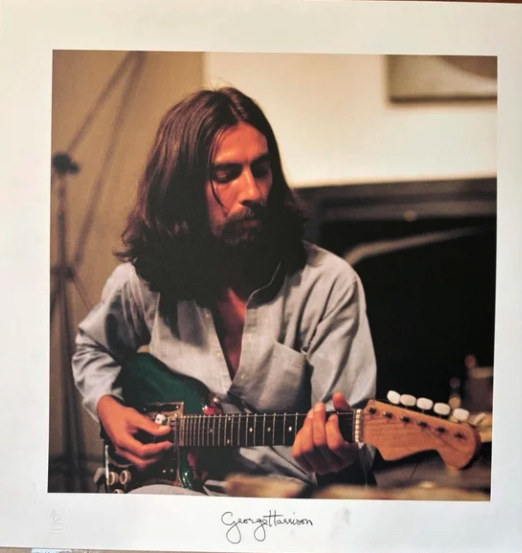 HomeMusic MemorabiliaGeorge HarrisonGeorge Harrison Playing The Guitar Litho – 20”x20”