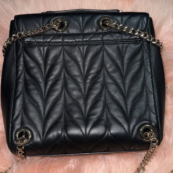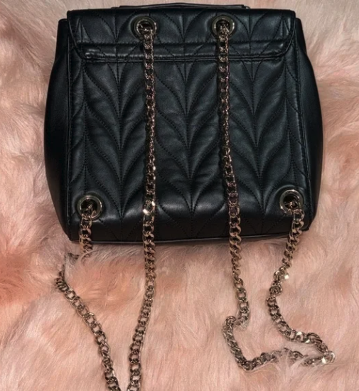 Pull the chain trough the back holes and it’s a backpack – pull the top handle up and it’s a crossbody bag!!