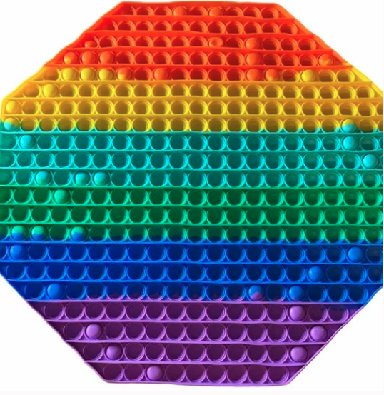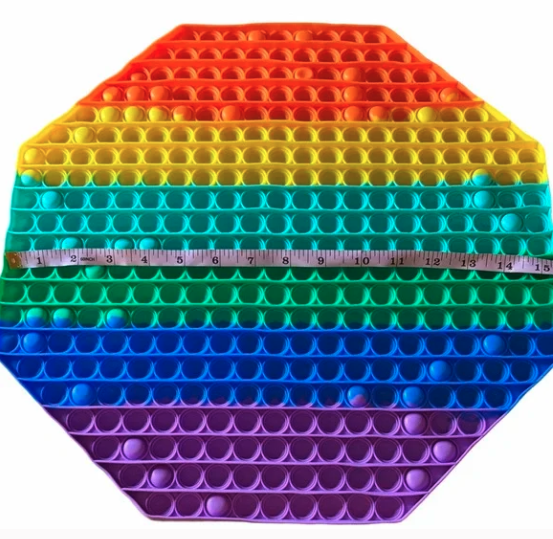 Enjoy endless fun with this vibrant Rainbow Pop It Fidget Toy. Size 15.5″ x 15.5″